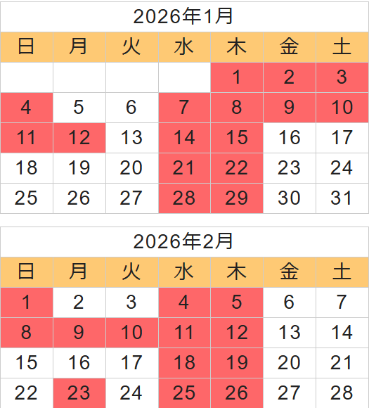 ■が休業日です。