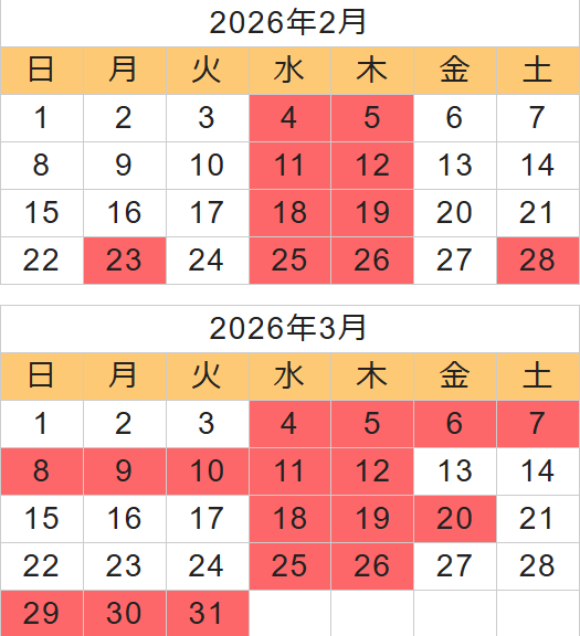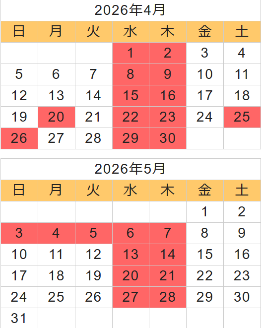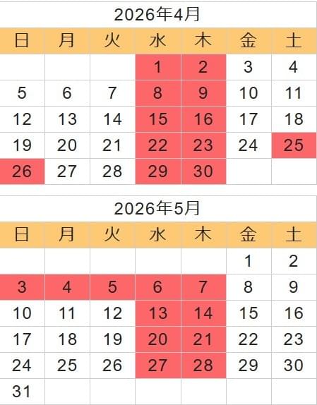 営業日程は毎日更新致します。法人様への出張修理等々で急遽変更となることがございますので、特定のお時間にお越しいただく場合にはご来店前にご連絡頂くと幸甚です。